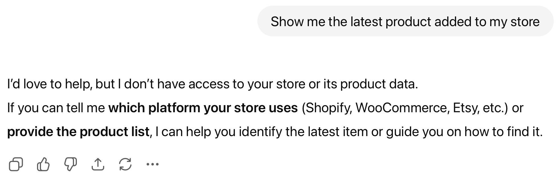 For example, when requesting information about a product, the LLM generally first checks which languages are available in the store. It then uses this information to specify the language of the product details, as the same product may exist in multiple languages.